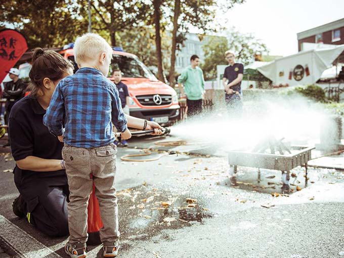 Wieder informiert die Freiwillige Feuerwehr Kaarst wieder über den vorbeugenden Brandschutz sowie das Verhalten in Gefahrensituationen. Auch der Umgang mit dem Feuerlöscher wird gezeigt und kann selber geübt werden.