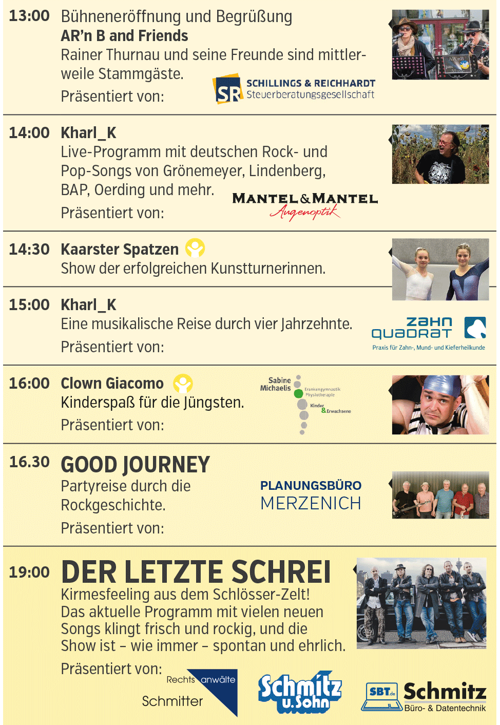 Den aktuellen Flyer mit dem Bühnenprogramm und vielen Infos finden Sie ab sofort in vielen Kaarster Geschäften und an den meisten Bühnen und Ständen bei Kaarst Total.
